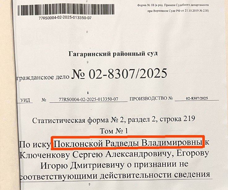 Бывший прокурор аннексированного Крыма Наталья Поклонская, долгое время считавшаяся «православным символом» «русской весны», сменила имя на Радведа. Об этом стало известно из материалов судебного иска о защите чести и достоинства, который она подала против Z-пропагандиста Сергея Мардана (Ключенкова).