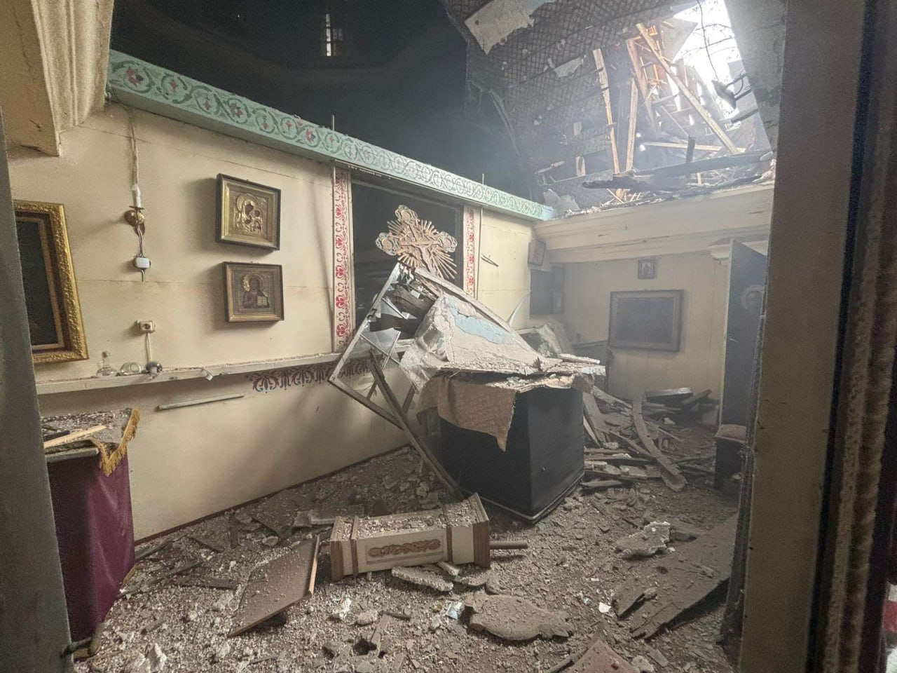 По данным епархии, прямым попаданием разрушен придел в честь равноапостольных Константина и Елены, повреждён центральный купол, частично пострадал иконостас главного алтаря.