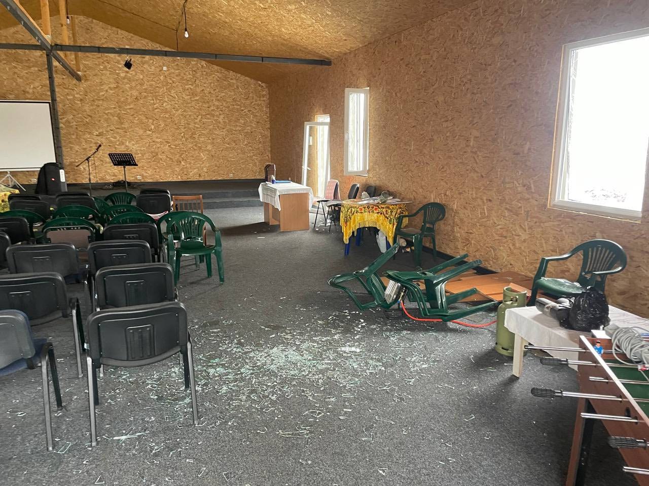 Пострадали еще соседний дом верующих, микроавтобус, а также церковное здание. В Доме молитвы выбиты окна и двери.
